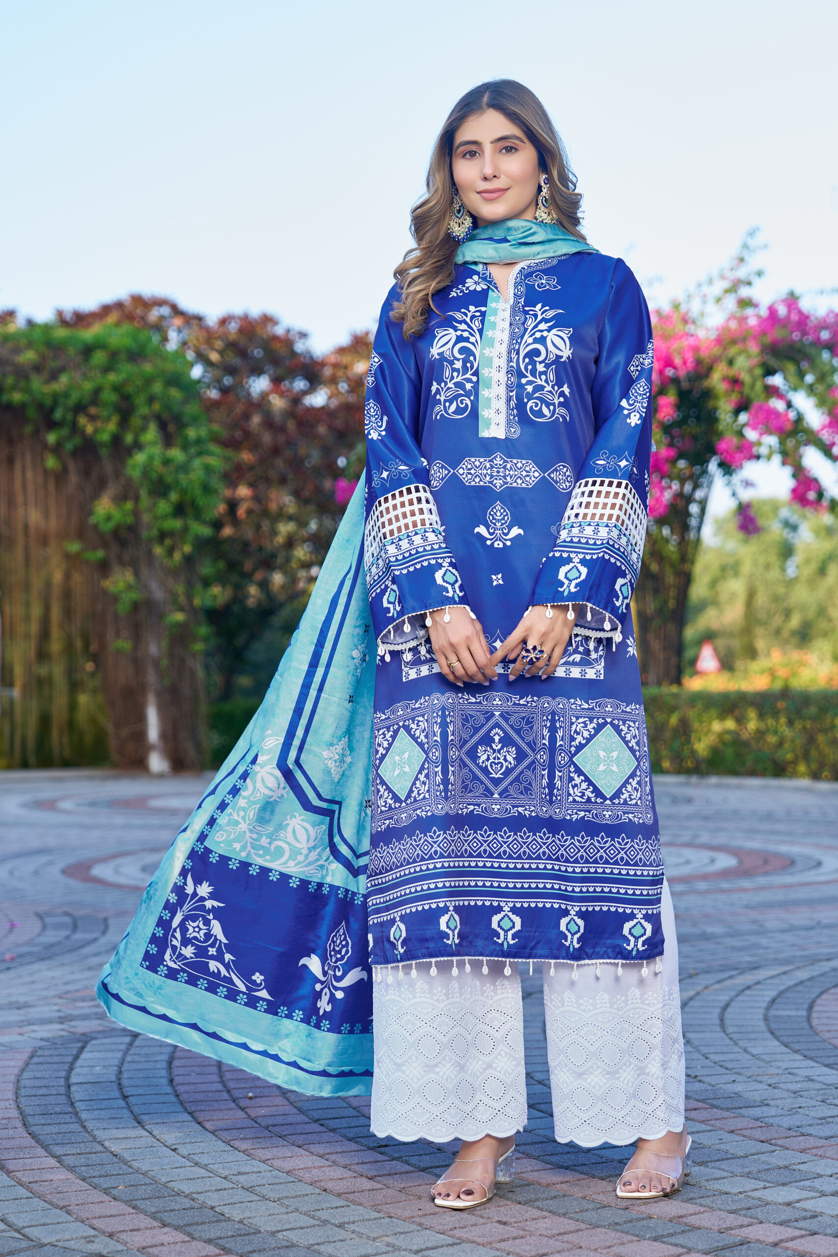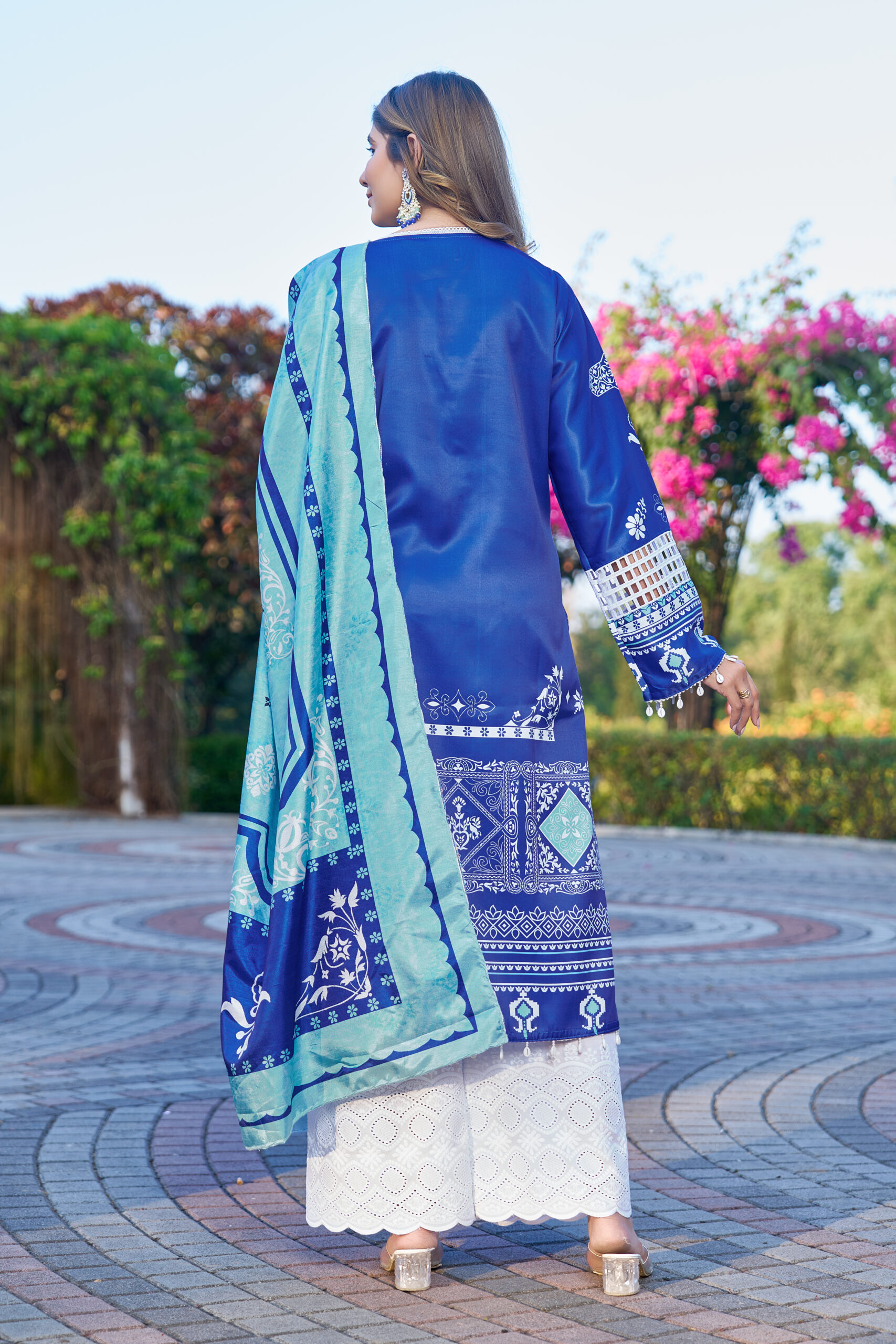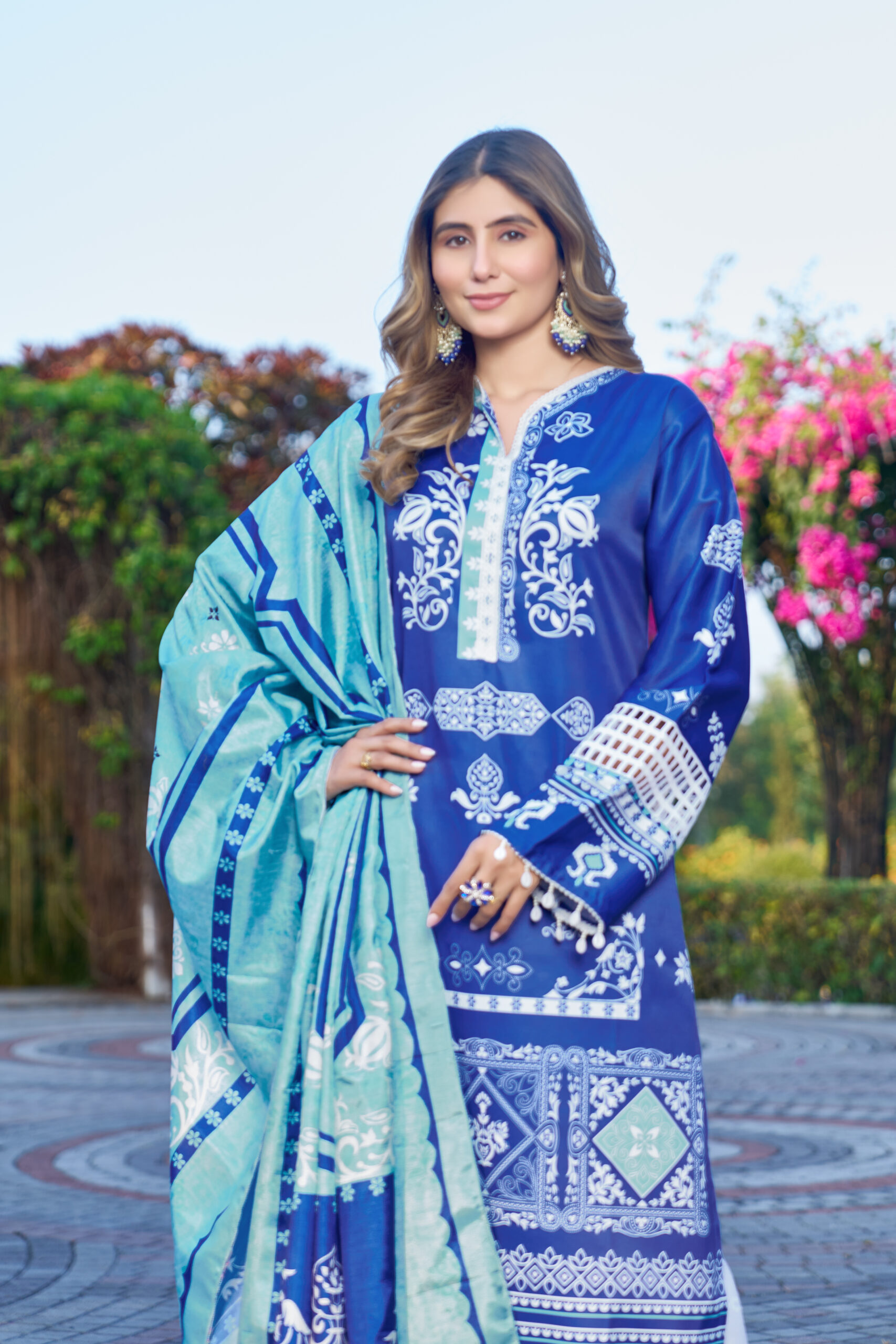 Royal Blue Printed Kurta Set with Aqua Dupatta W-2137